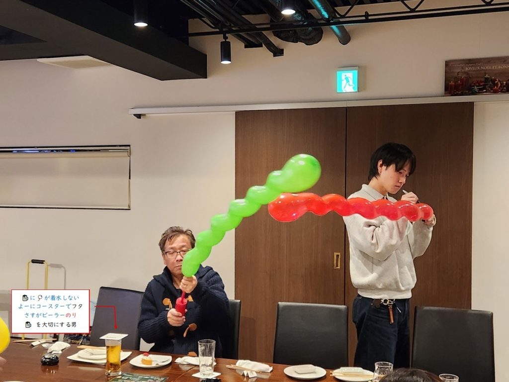 👇👇👇 逆転を信じて、ねじねじ風船準備をするメンバー達 👇👇👇