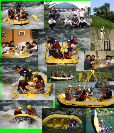 9月1日(土)東海事業部親睦会が開催。今年の夏は超猛暑!9月の声を聞いても残暑はバリバリッて事で、今回の東海親睦イベントは『ラフティング』命を懸けて激流を下る!究極の親睦、究極のチームワークが計れます。 天気は快晴、ラフティング日和。 3班3艘に分かれていざ出走、清流水の涼しさと、恐怖の涼しさを堪能できます。 マイナスイオンもバリ×2です。 落艇者続出、転覆続出で超楽しめます。 全員初体験、しかし全員「絶対またやりたい!」と口を揃えてました。 激流を下った後には、5mの崖からのジャンプと恐怖は続く。 その後、親睦会一行は温泉『子宝の湯』でひとッ風呂浴びてサッパリ。 最後は本日の打ち上げでカンパ〜イ!