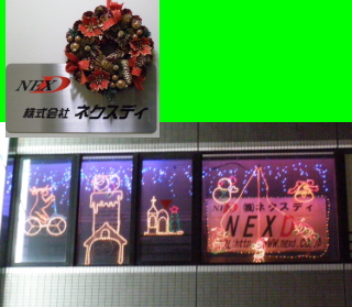12月7日、本社では「クリス、マスマス近し!」という事で、毎年恒例となったクリスマスイルミネーションの取り付け作業を行ない、午後17時点灯した。 今年は昨年と比べると若干パワーアップ。 LEDつららライト2本、更にエントツサンタクロースも追加した豪華版! 入り口ドアにもX'masリースも取り付け。 昨年はバタバタしていて、X'mas本番数日前の飾り付けで、かなり寿命が短かった事を反省しての早目の行動。 NEXD本社メンバーは広島の・・・イヤ、東区・・・光町1丁目のルミナリエを目指している・・・らしい。