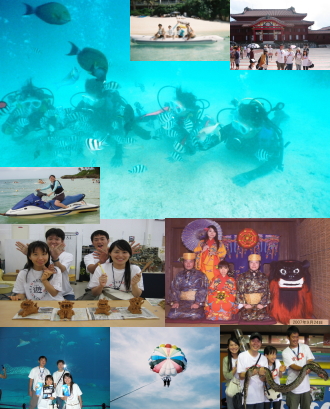 9月22・23・24の三連休、本社グループは以前 から計画していた『遊びまくるぞ!沖縄2泊3 日の旅』を開催した。 滞在期間は短いものの、内容はメチャクチャ 濃い三日間、1分たりとも無駄にしないぞ! 一食たりとも無駄にしないぞ!と気合十分で 殆ど分単位の欲張り過密スケジュール。 シーサー作りに始まり、マリンスポーツ各種、 美ら海水族館に世界遺産首里城、もちろん沖 縄郷土料理は食べ尽くしの、泡盛飲みまくり。 しかし、メンバーには沖縄料理は、お口に合わなかった模様で・・・。 ハブ博物公園では中原部長が地球上で最も嫌 いと公言し続けていたヘビ、しかも2mのハ ブとの記念写真に臨むといった開放感ならで はのドキドキチャレンジ。 遊び過ぎて時間オーバーで、帰りの飛行機に はダッシュ!ダッシュ!離陸5分前の搭乗手 続きで超ギリギリセーフ!といったドキドキ 感も味わいながらの充実した旅行となった。
